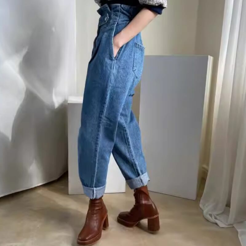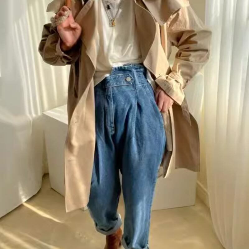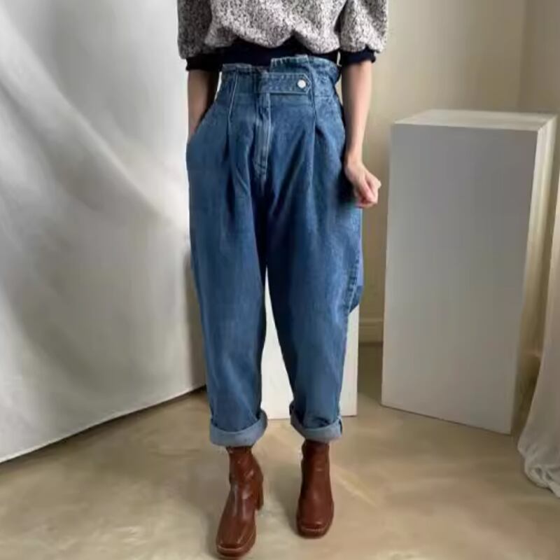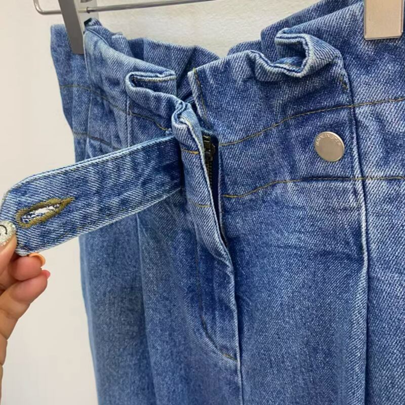 One button back rubber denim pants RW0123