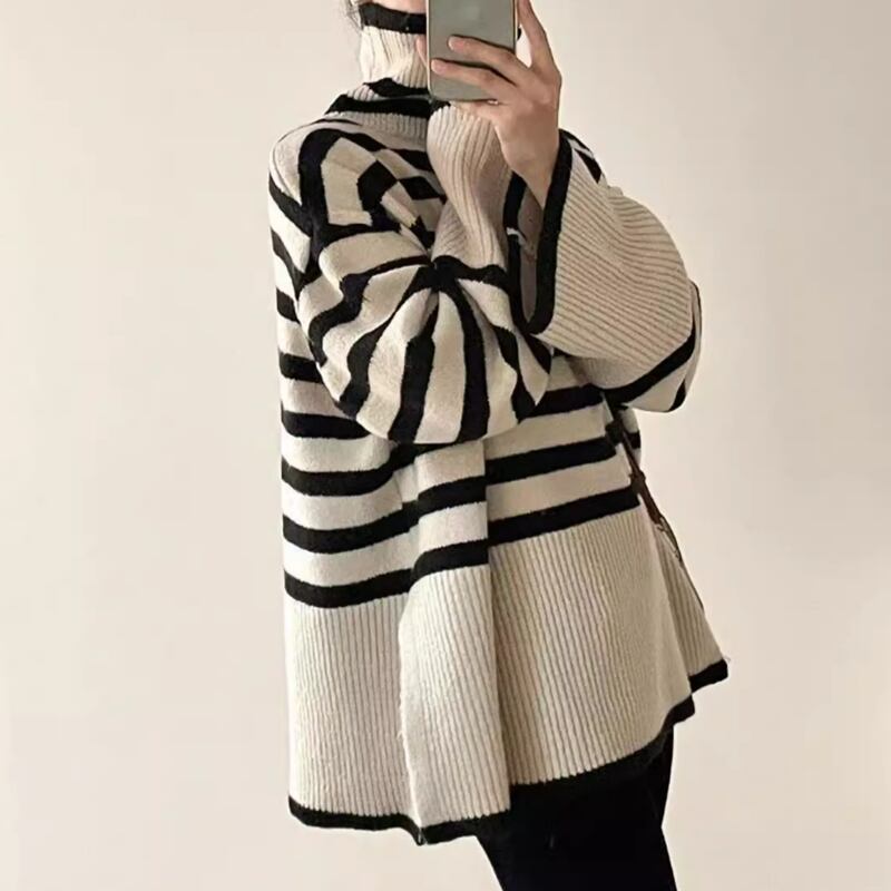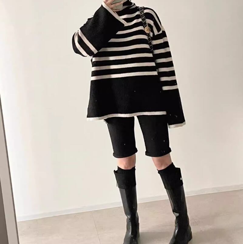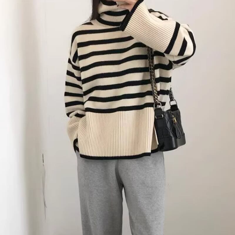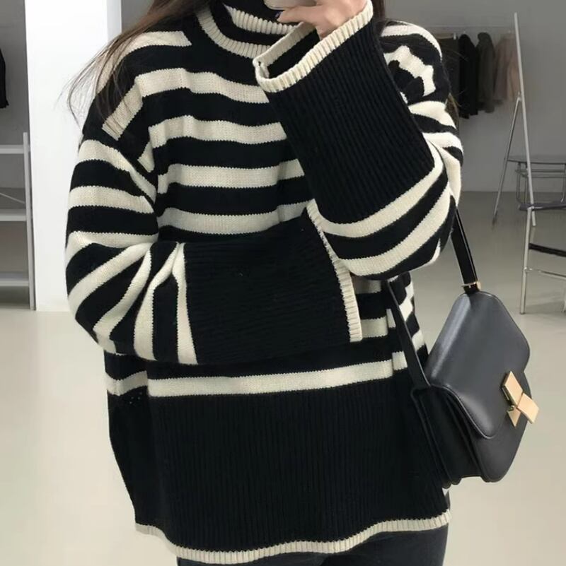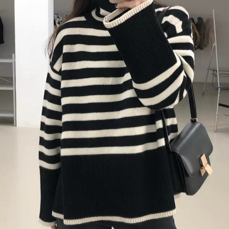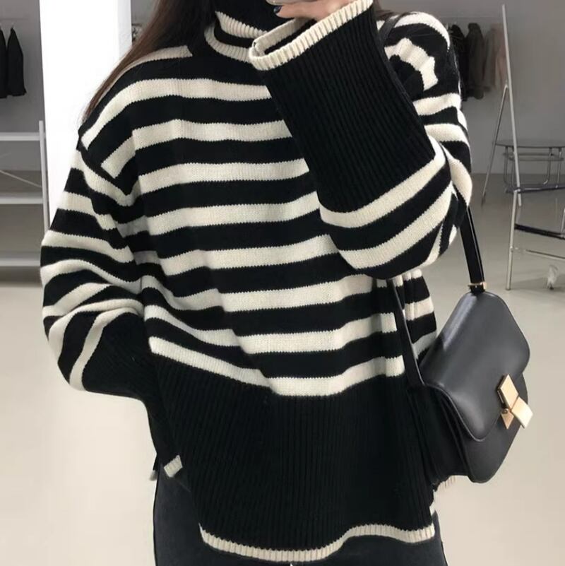 Border high neck flare knit 2olors RW0198