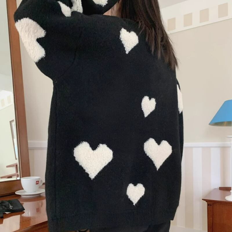 Round neck heart contrast knit 2colors RW0212