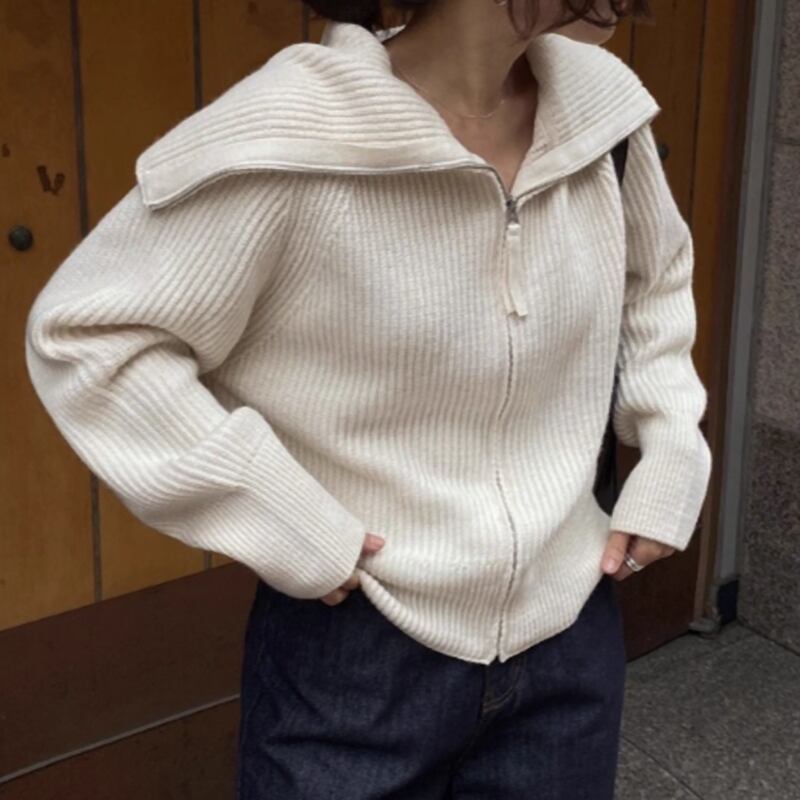 Zipper knit cardigan 2colors RW0255