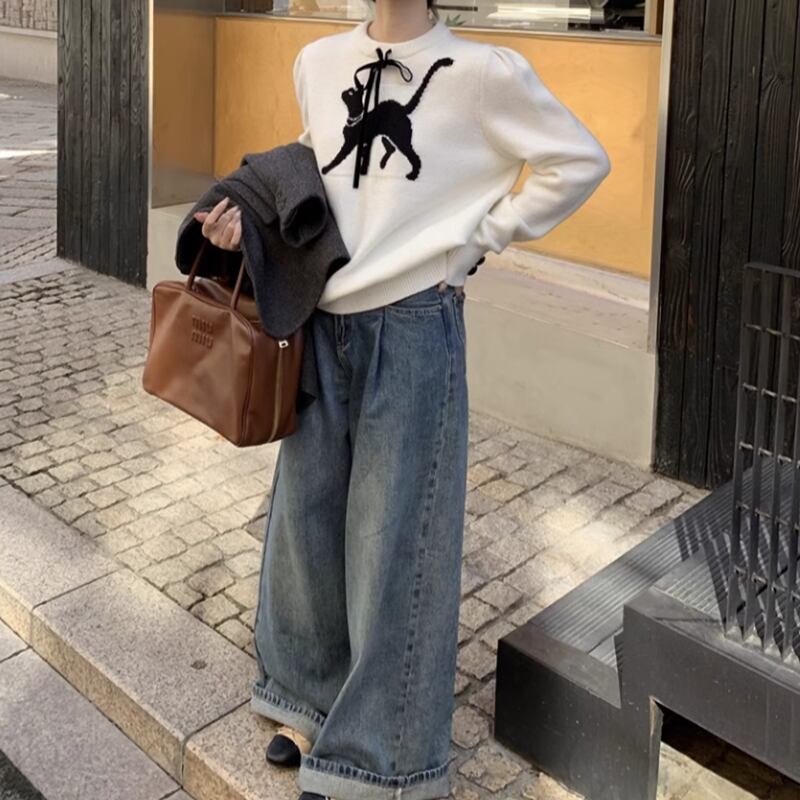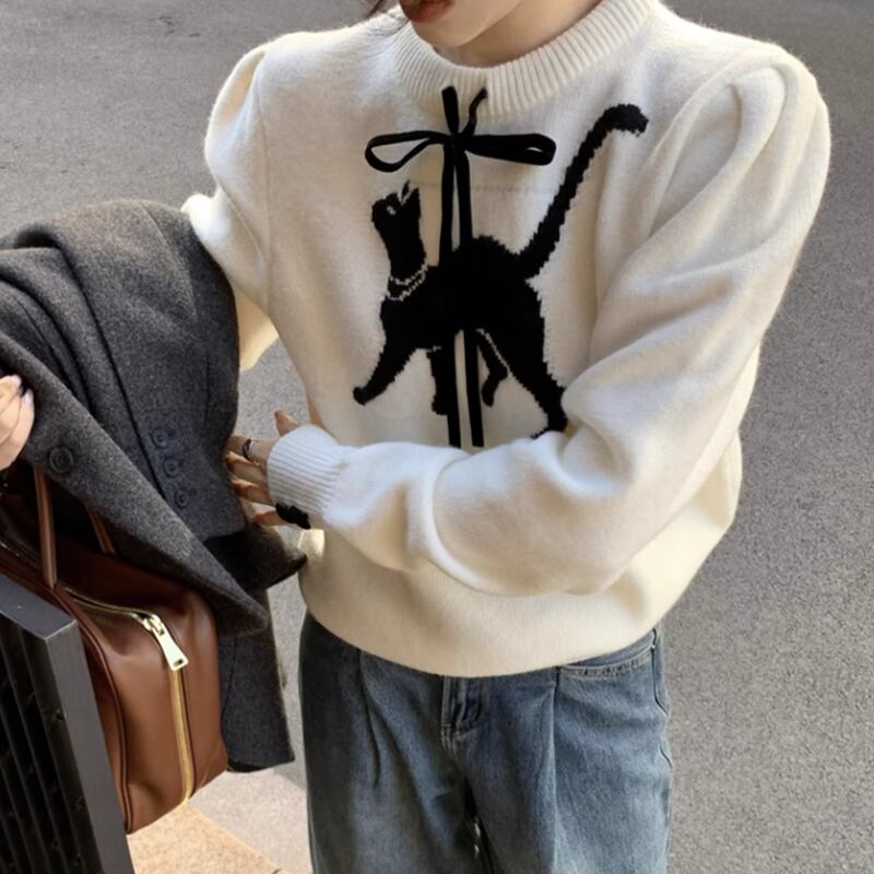 Round neck cat puff sleeves knit RW0265