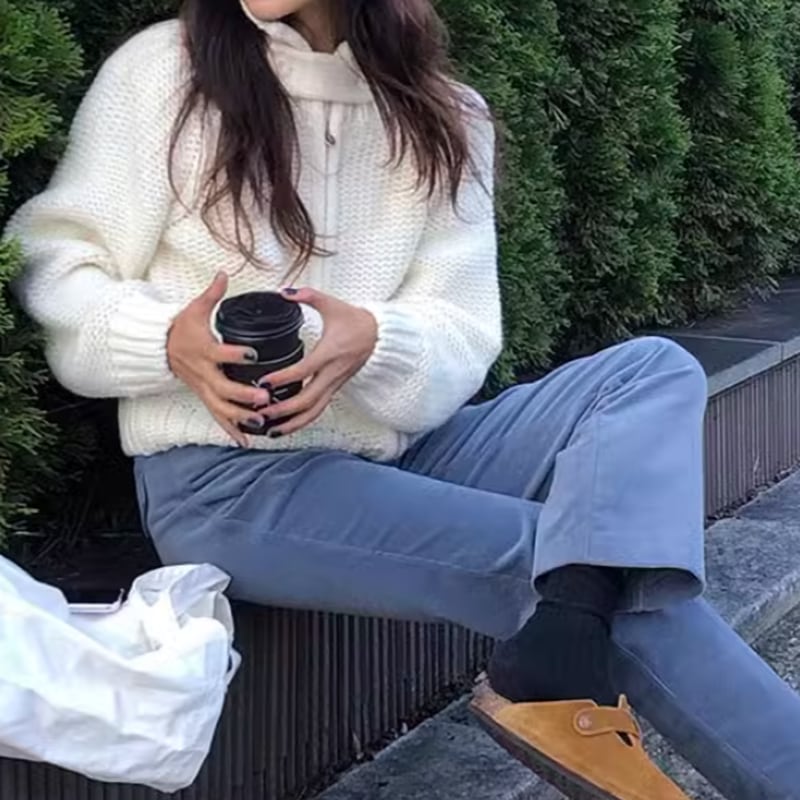 Harf neck zipper knit cardigan RW0272