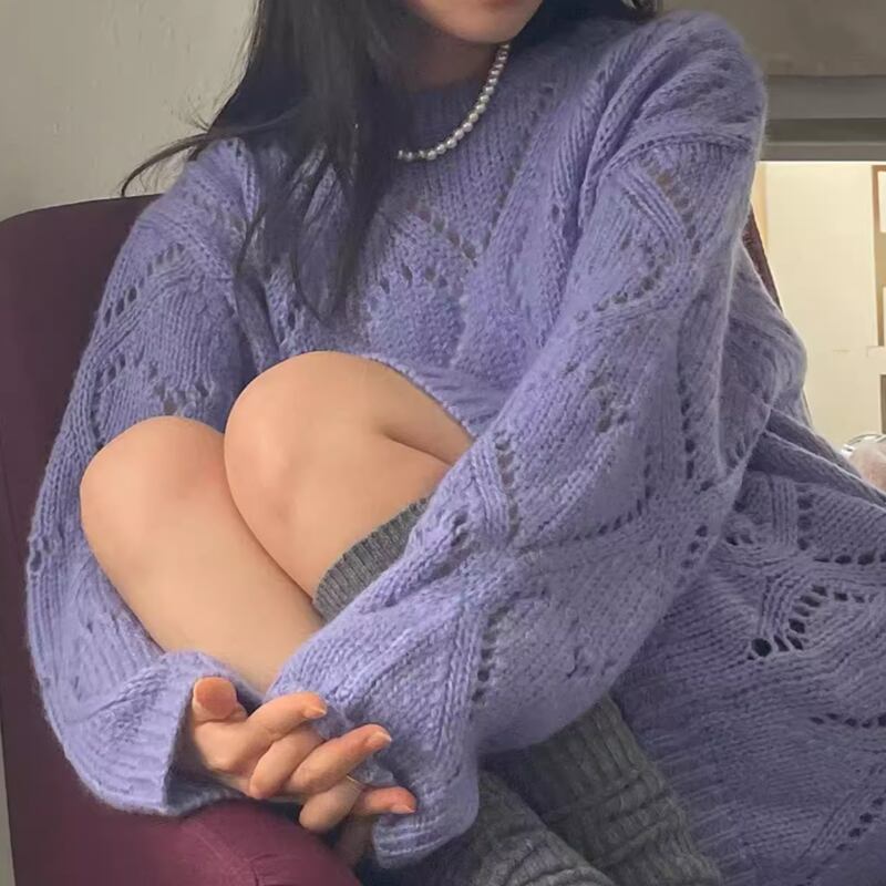 Round neck heart long knit 3colors RW0358