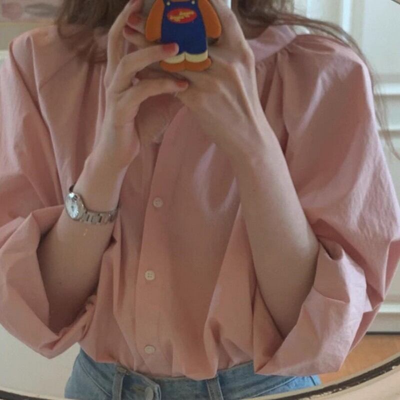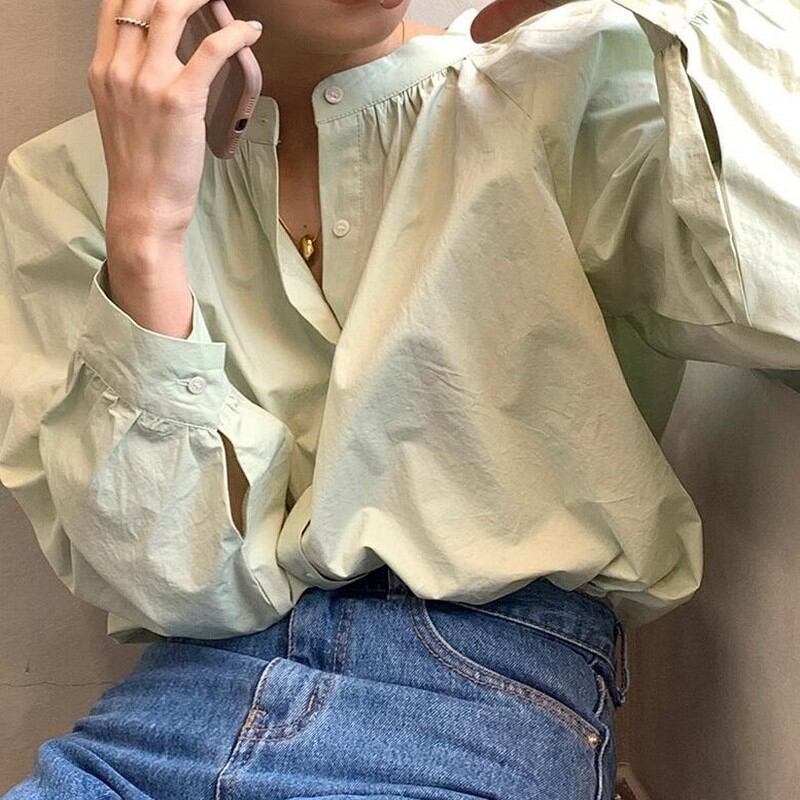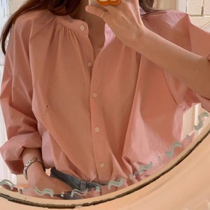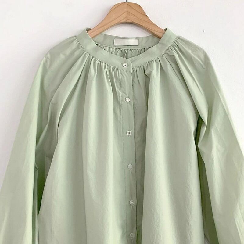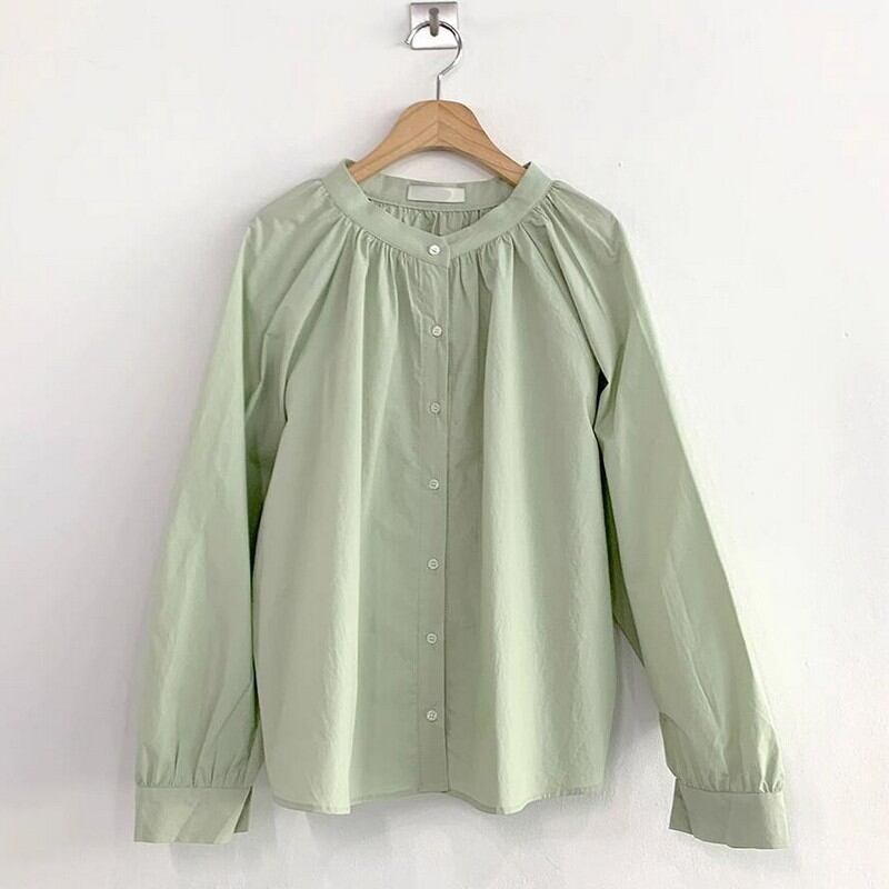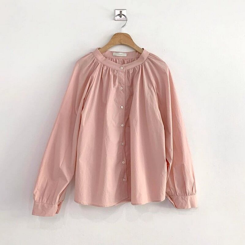 Single-breasted round neck shirt 2colors RW0420