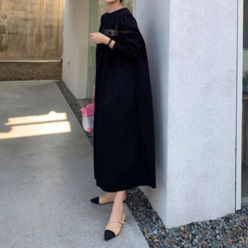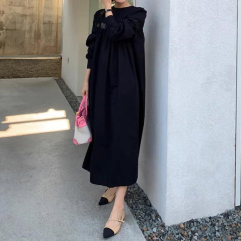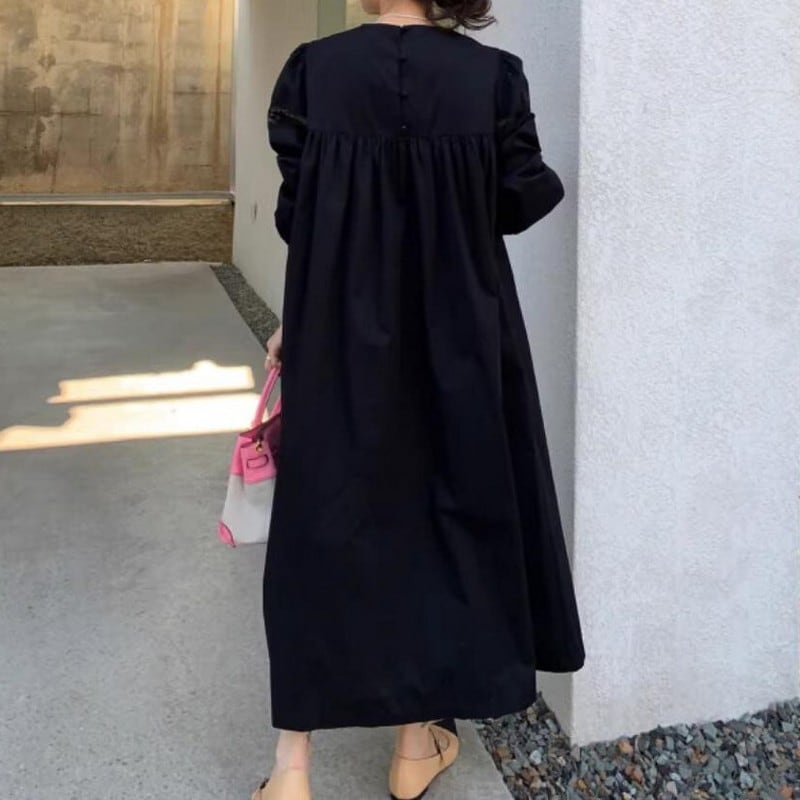 Pleated loose puff sleeve dress 2colors RW0499