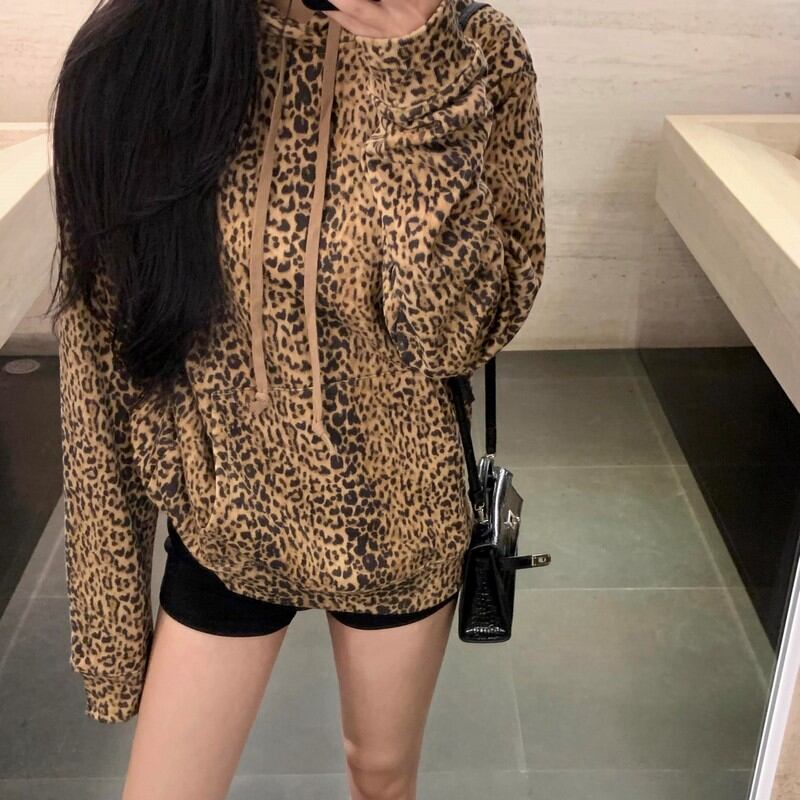 Leopard print hooded pullover RW0474
