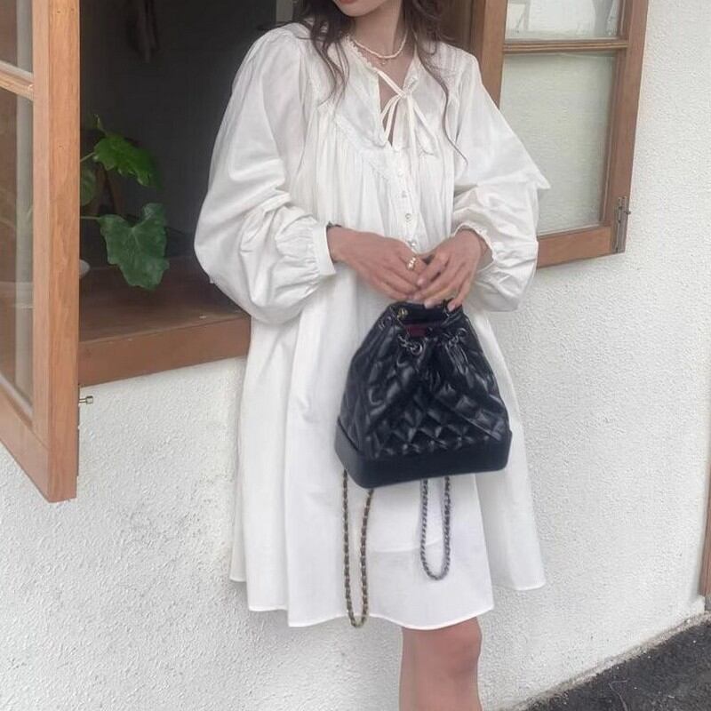 Retro lace short shirt dress RW0468