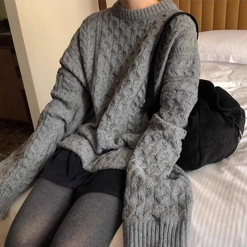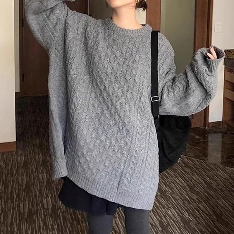 Round neck loose knit pullover RW0436