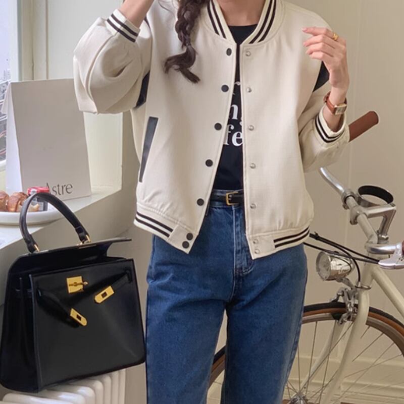 Baseball line no collar jacket 2colors RW0558