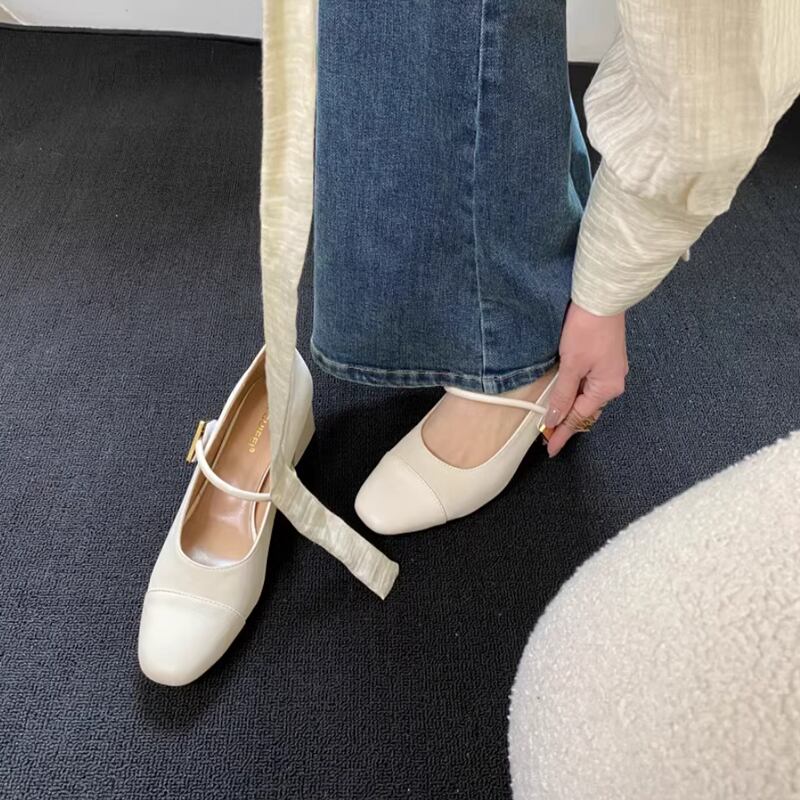 Square toe thick heel shoes 4colors RW0570