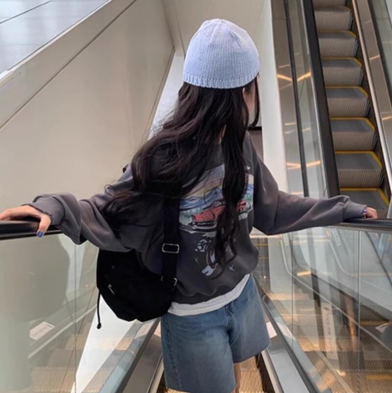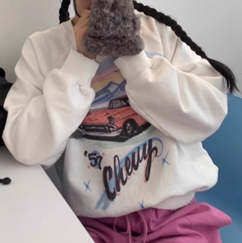 Car print round neck pullover 2colors RW0583