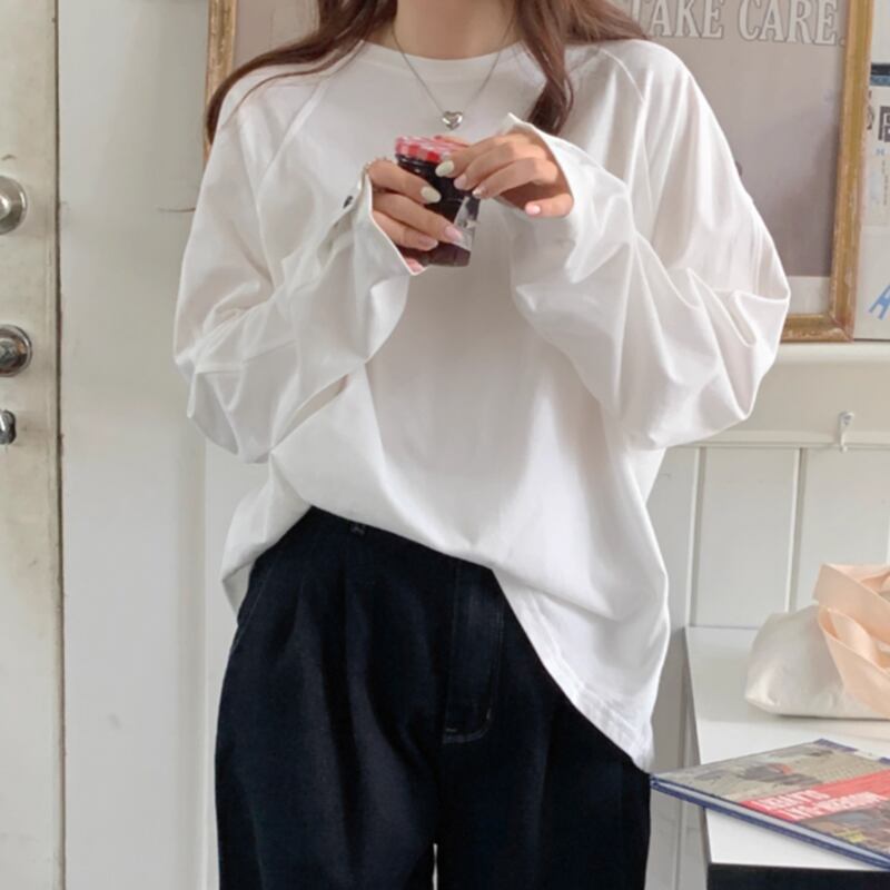 Sleeve button raglan tops RW0746