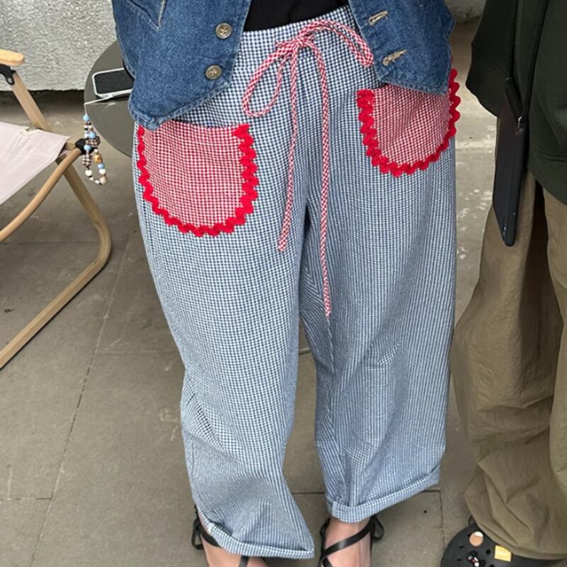 Checkered pocket wide pants 2colors RW0754