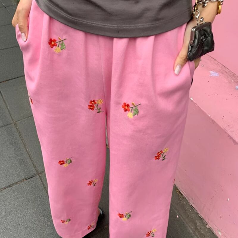 Flower embroidery denim pants RW0753