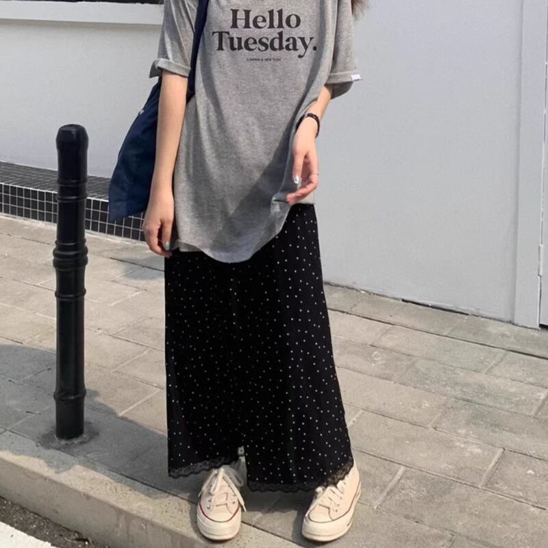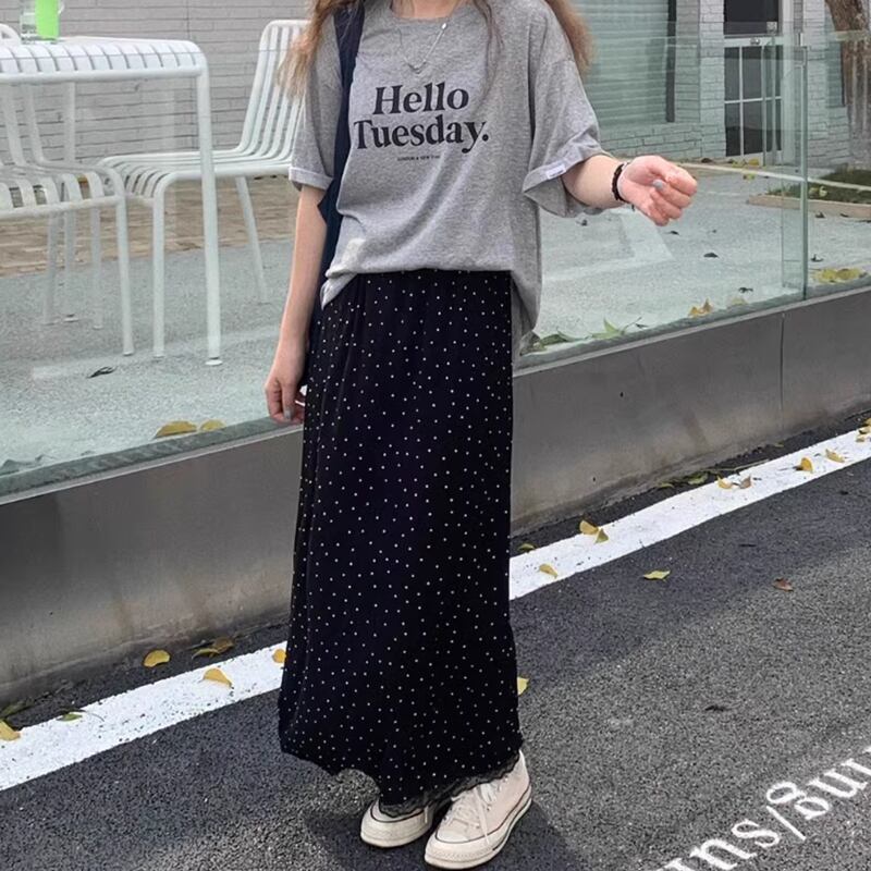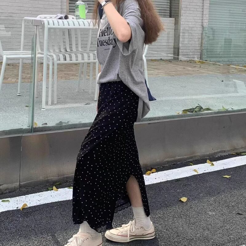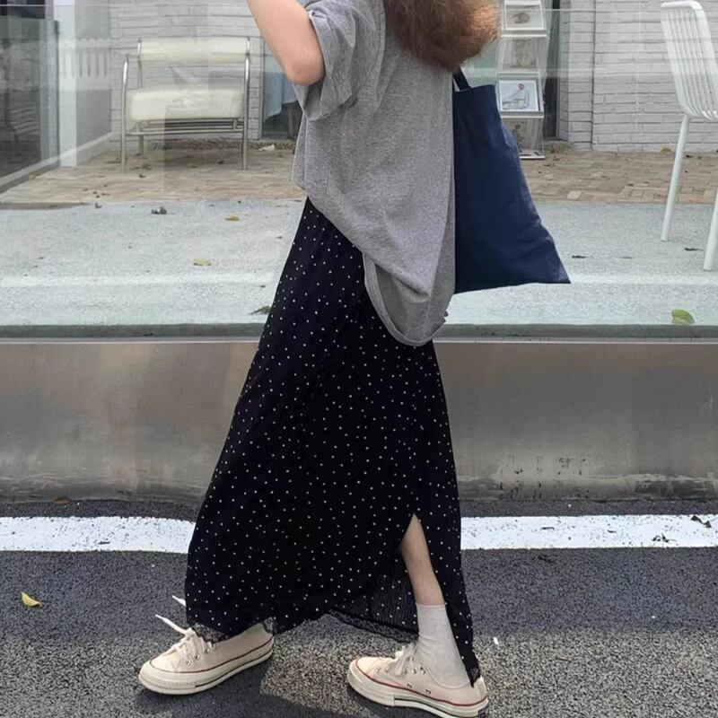 Dot back slit long skirt RW0821