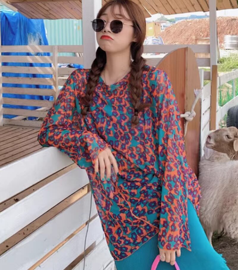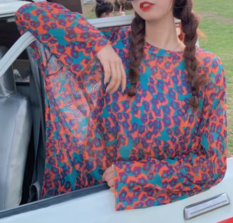 Flower sheer long sleeve tops RW0881