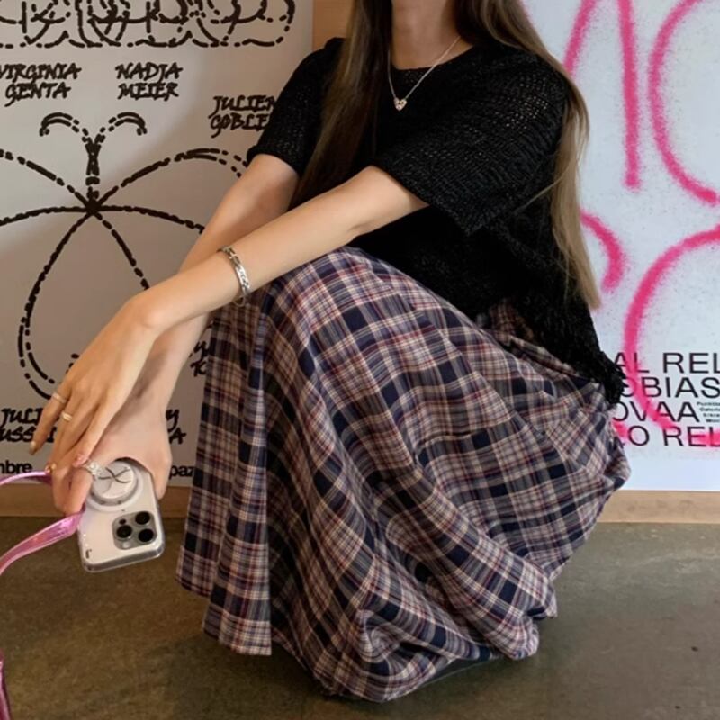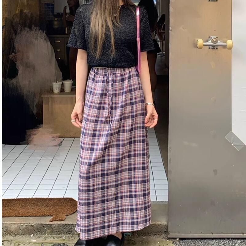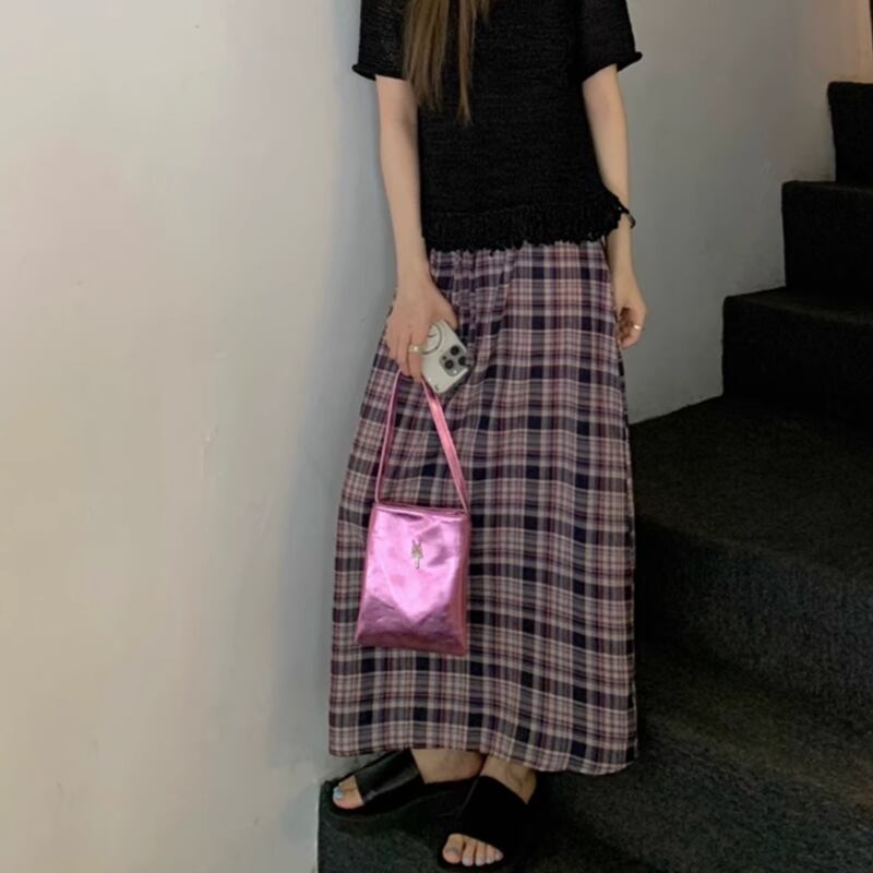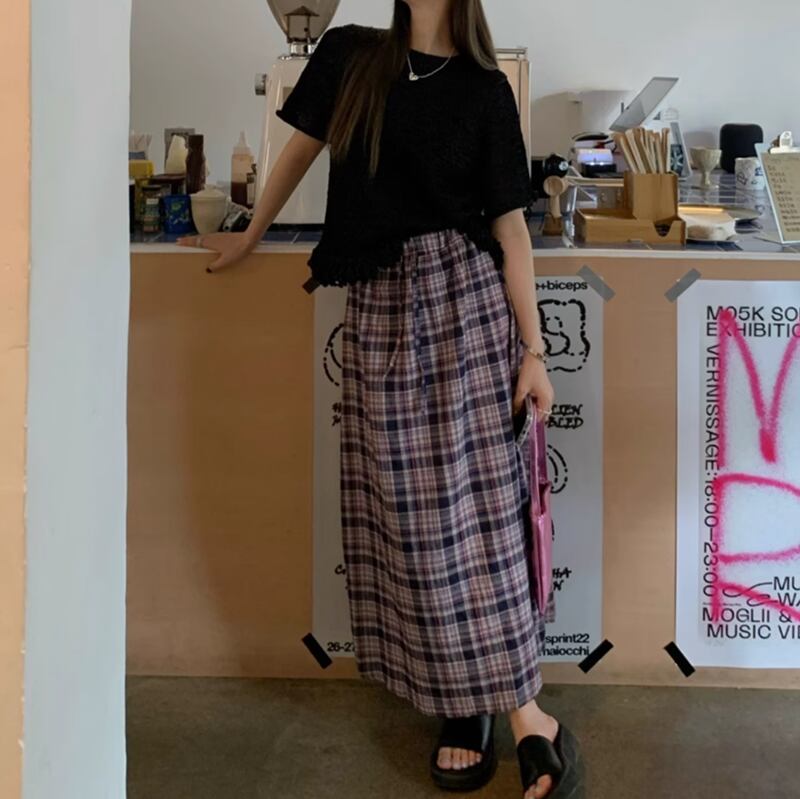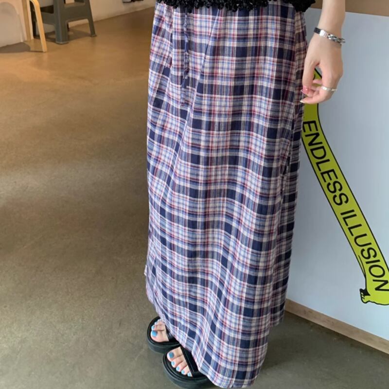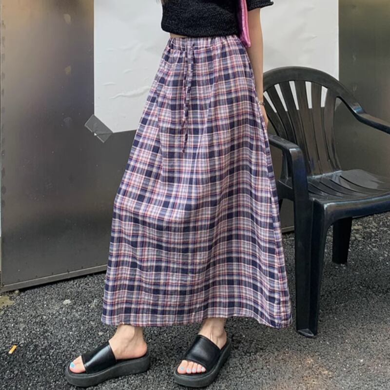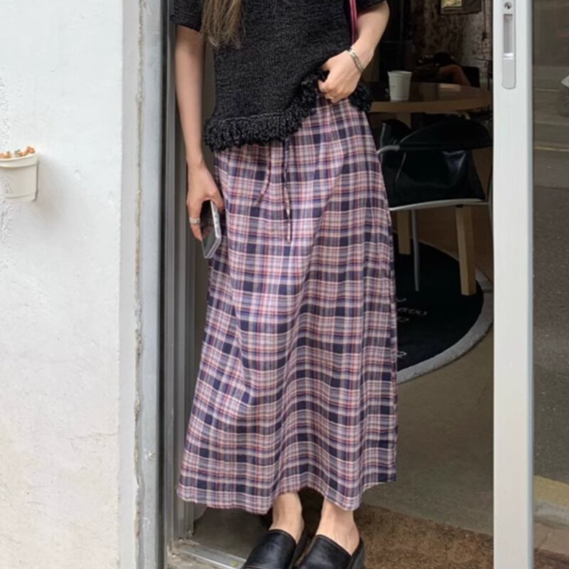 Checkered long A line skirt RW0908