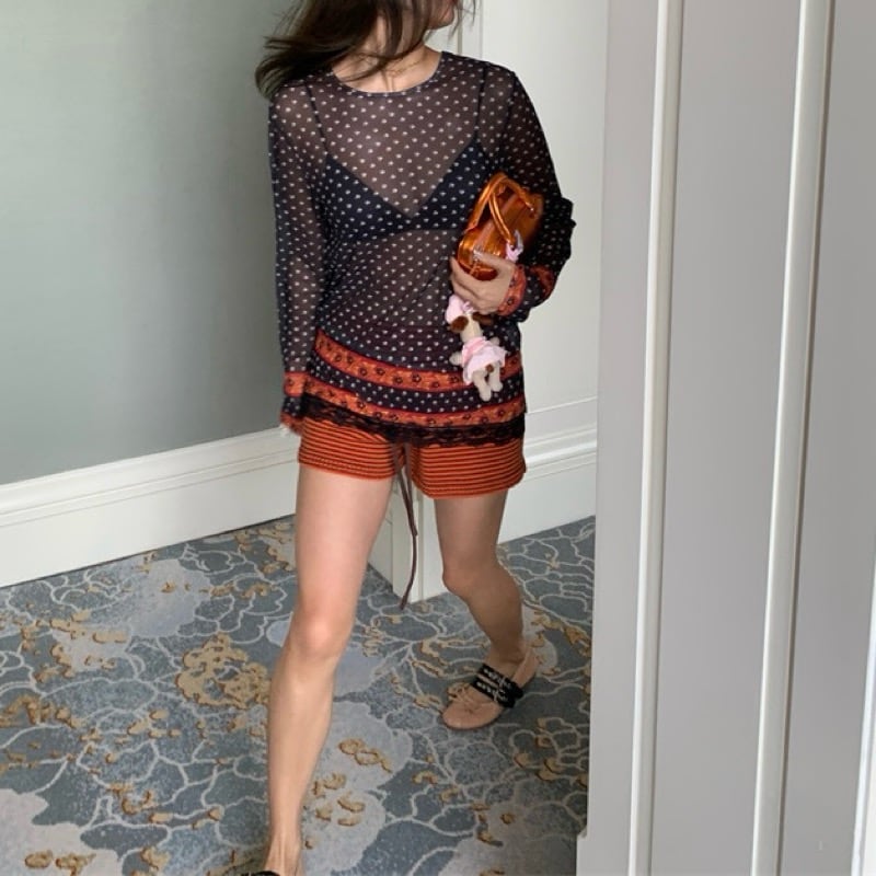 Sheer and lace long sleeve tops RW1201
