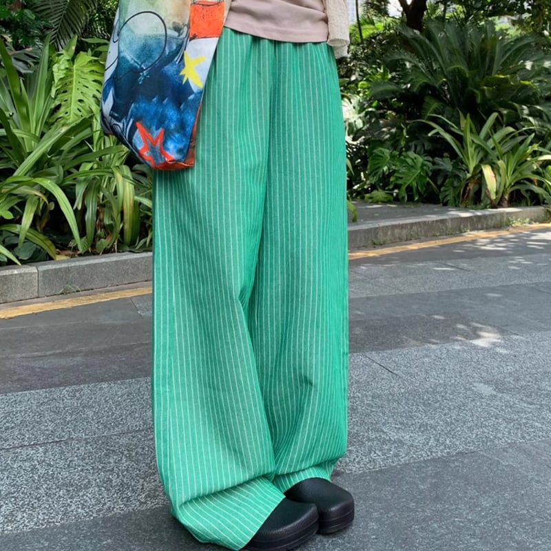 Stripe wide loose pants RW0946