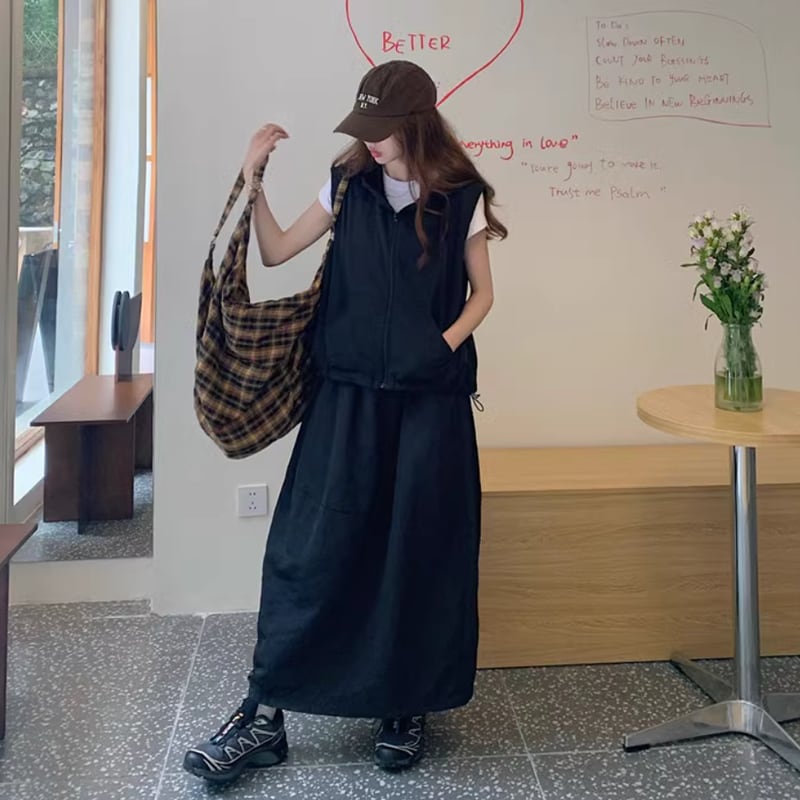 Hoodie vest and skirt setup RW0950