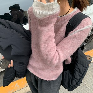 フェイクレイヤードが特徴のモヘアセーター。柔らかな肌触りで、スタイリッシュかつ快適な着心地が魅力です。
